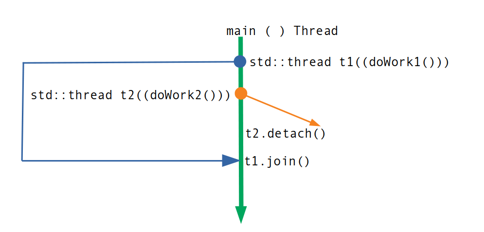 - main함수에서 특정 thread를 실행시킨 후 다시 해당 thread의 멤버함수 join를 호출해주자. 해당 thread가 종료될 때까지 대기한다. 멤버함수 join이 없으면 thread가 종료되기 전 main함수가 종료되 에러가 발생한다.