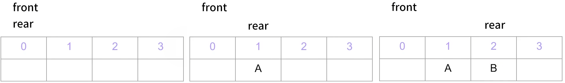 - 값을 추가하면 rear를 증가시켜 해당 index에 값을 할당한다