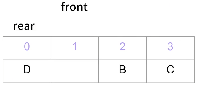- rear 값이 capacity를 넘어가면 0에서 시작한다. rear = (rear + 1) % capacity