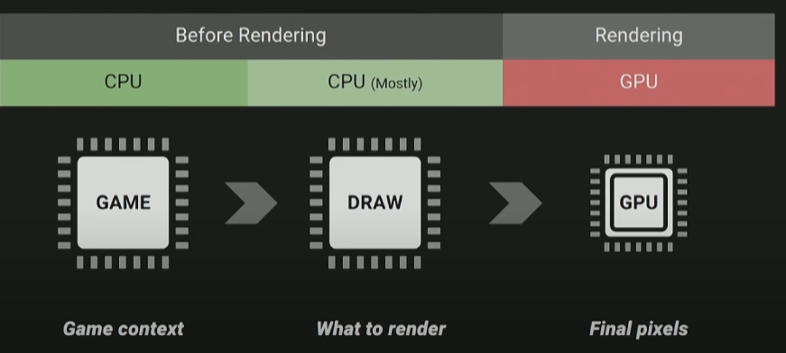 렌더링 전 CPU는 게임에 있는 모든 논리적 요소를 처리한다. 게임 안에 있는 객체의 Location, Physics, AI 등이 있다. 게임안에 구현되어 모든 요소의 계산 결과를 1Frame에 처리한다.