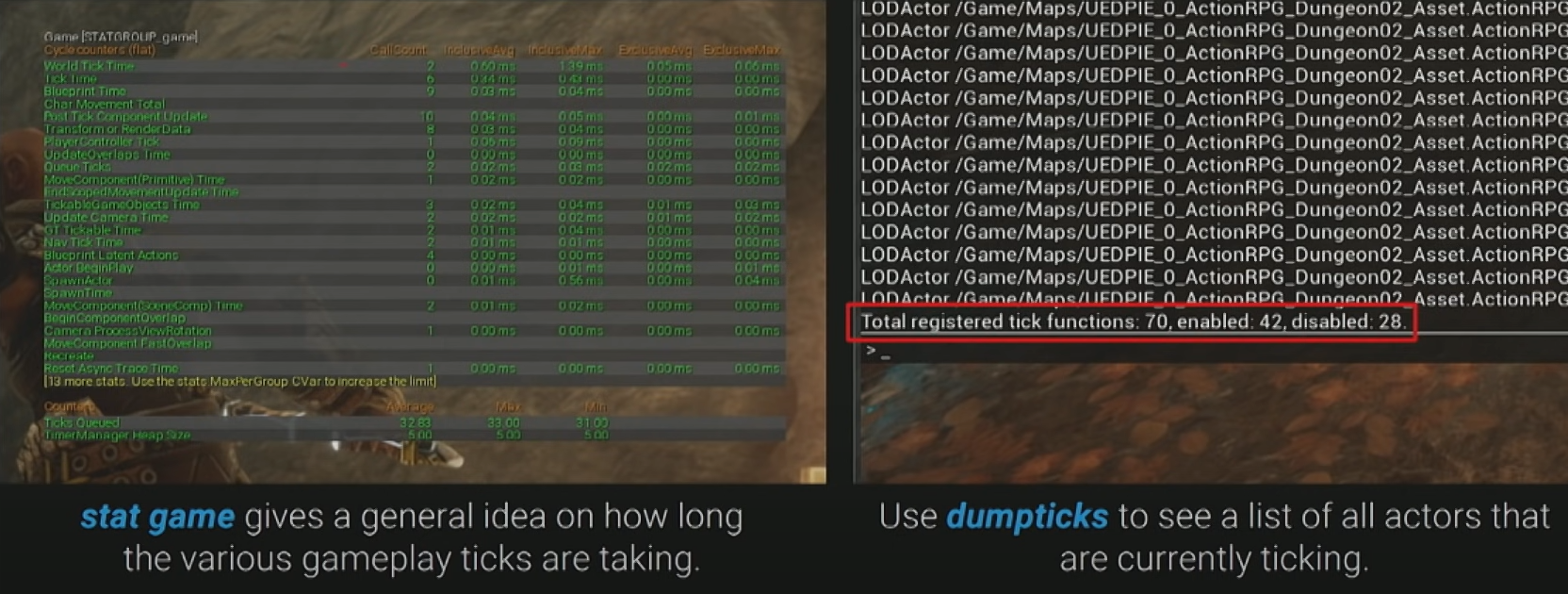 - 게임내에 얼마나 많은 Tick 함수가 있는지 확인하려면 stat game 과 dumpticks 활용하자