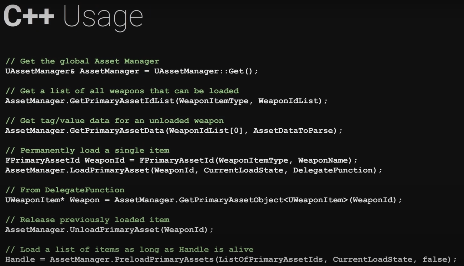 1) GameLevel이 자주 바뀌면 Asset Manager가 필요하지 않다. Asset을 당장 쓰지 않더라도 Reference를 가지고 있으면 Memory를 잡아먹는다. 이러한 Asset이 많고 Level이 바뀌지 않는 RPG 게임은 Asset이 Memory를 계속해서 잡아먹을 수 밖에 없다. 이때 Asset Manager를 유용하게 사용할 수 있다.