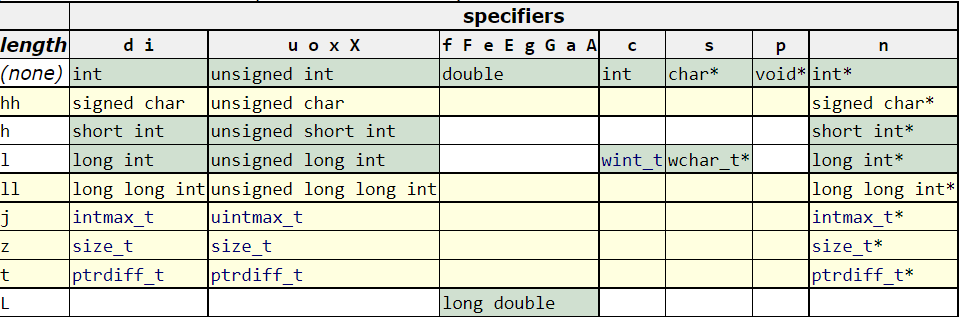 참고) 출력에 필요한 specifier ( unsigned int : %u / size_t : %zu )