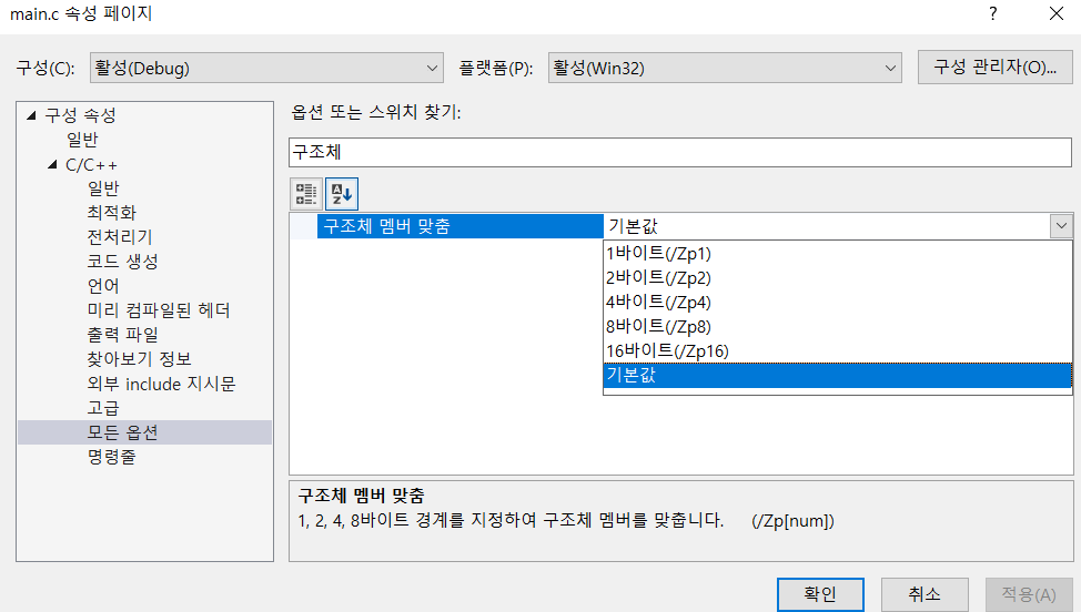 메모리 패딩이 필요한 구조체